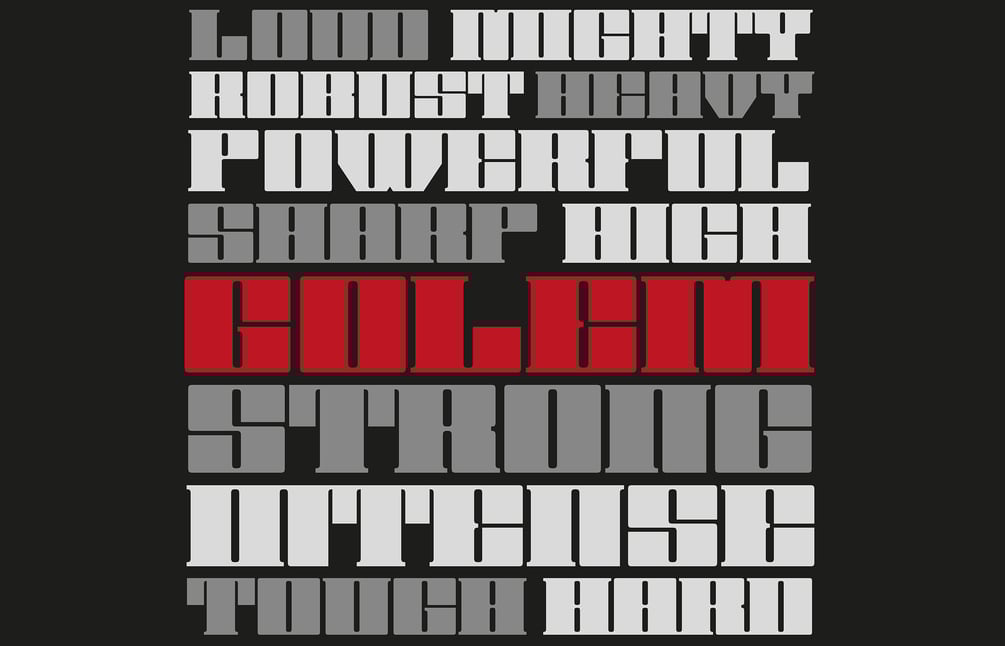 Golem was not created to be readable in small bodies, it is heavy, too strong to be used in large texts. Its construction is clear, but at the same time, subtle in details that make the difference between all the glyphs.